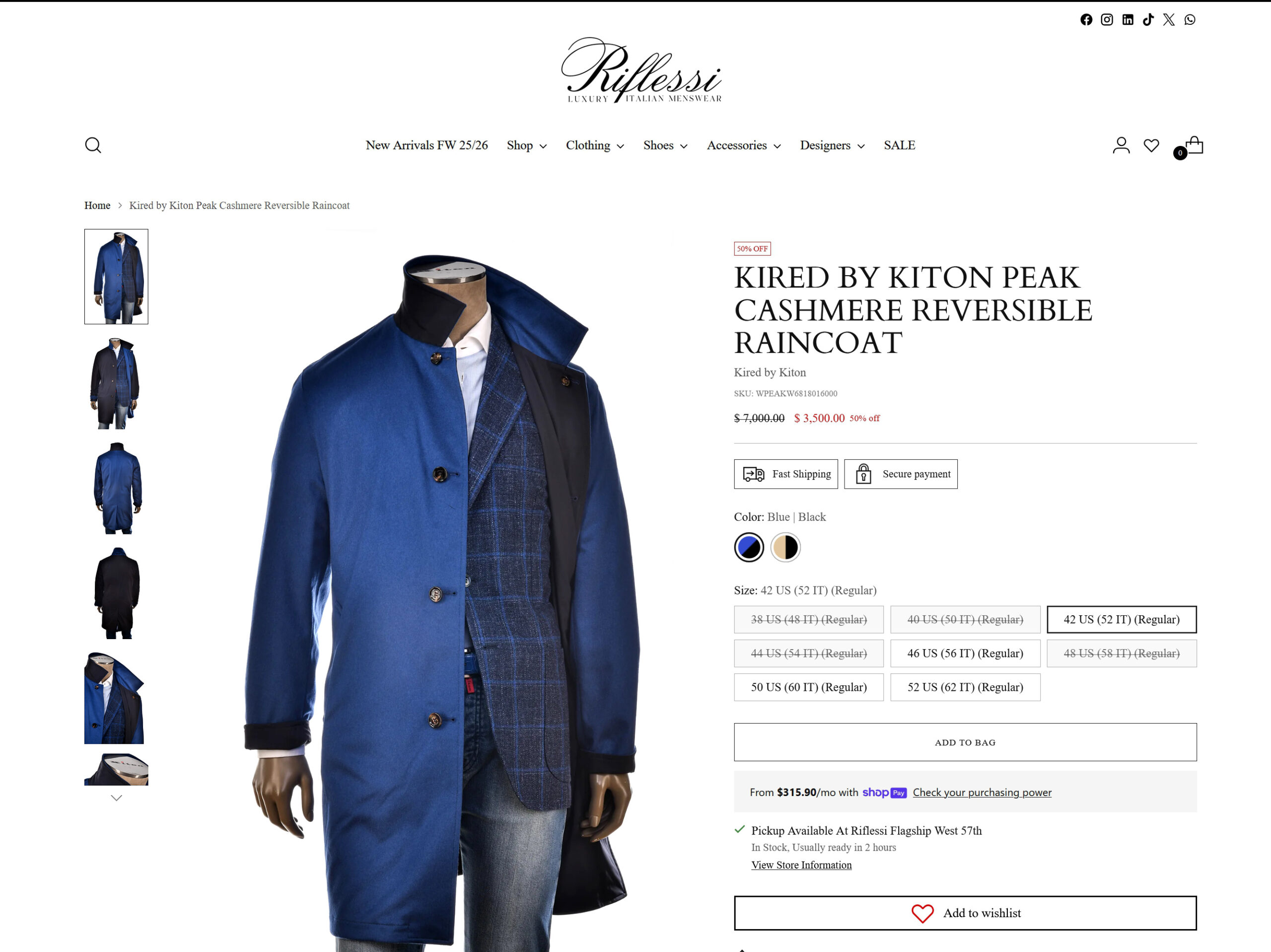 Kired By KITON Raincoat - Riflessi Store Accessories Catalog (Website Screenshot)